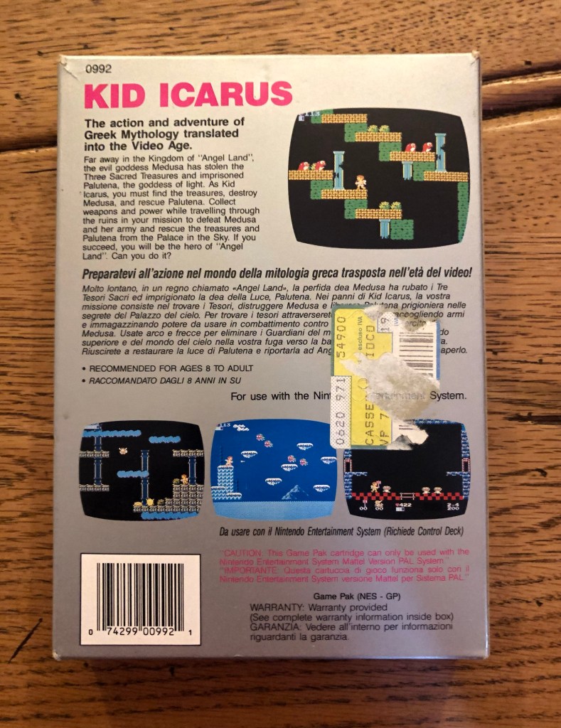 Dentro il pacchetto c’era Kid Icarus, un gioco per il NES. Non era quello che mi aspettavo, eppure mi colpì in un modo strano. Non conoscevo Kid Icarus, non sapevo che tipo di avventura mi stesse aspettando. Ma subito quella sorpresa inattesa accese una curiosità nuova in me.